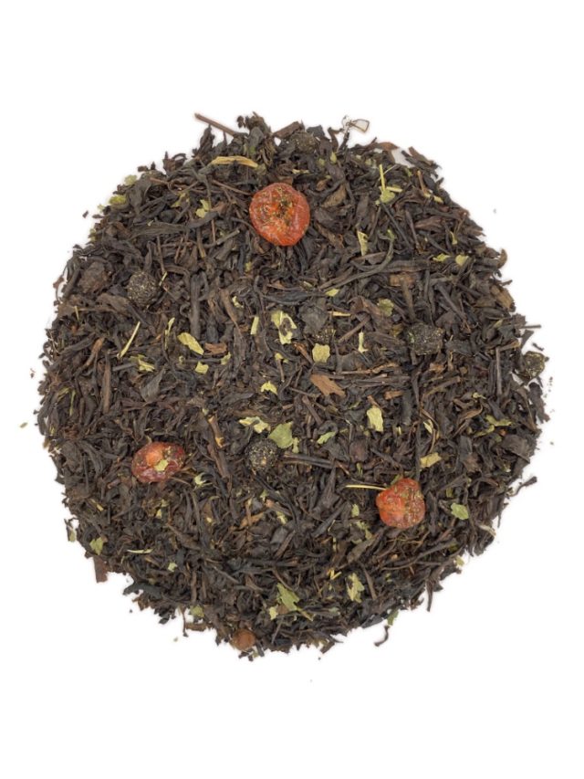Это черный чай, в основу которого входит Ассам, китайская красная вишня, черная вишня и лист смородины.