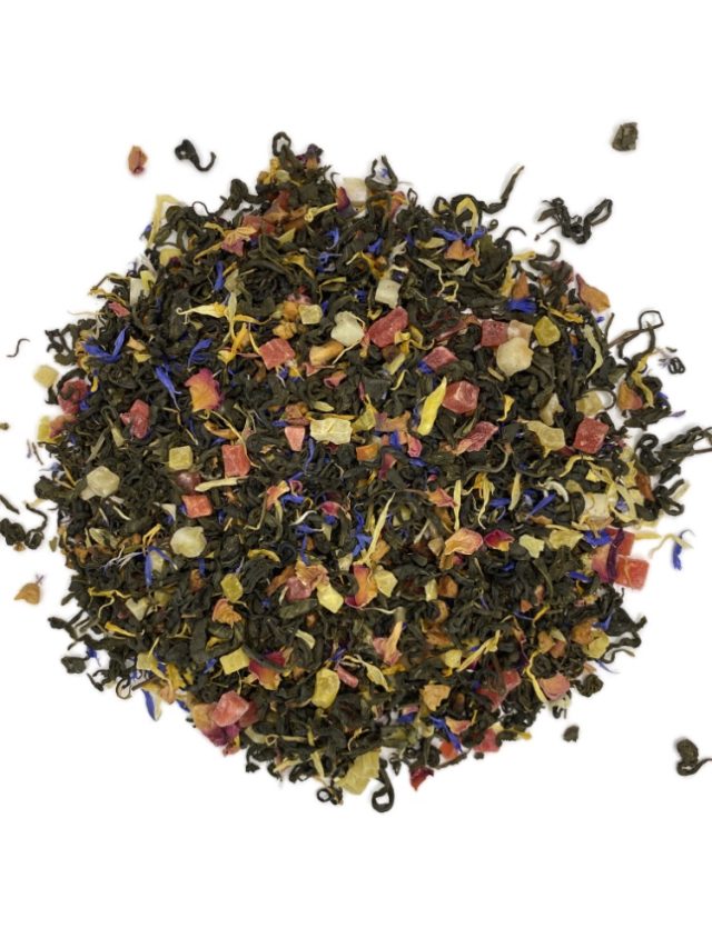 «Мулен Руж» – это эффектное сочетание китайского зеленого чая с кусочками яблок, папайи, ананаса.